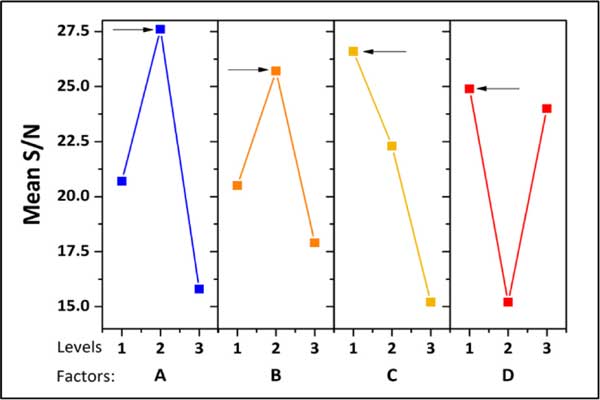 環(huán)己烷和苯在測試活性炭上的二元吸附,有相應的穿透曲線;钚蕴縀4對二元混合物中的兩種碳氫化合物顯示出最高的吸附能力。盡管樣品E4的苯吸附容量較高,但其選擇性低于其他活性炭(E9>E5>E6>E3>E1>E8>E2>E4>E7)。所有活性炭都優(yōu)先吸附苯,但樣品E1、E4、E5和E8顯示出很高的苯吸附能力。填充床的小數(shù)容量比在單組分氣體吸附更大的二進制吸附。當使用低吸附物濃度時填充床的吸附效率增加。表明活性炭材料可以更容易、更有效地吸附傳質(zhì)區(qū)中的碳氫化合物。在二元混合物分離中,對活性炭苯吸附能力影響最大的因素是:活化劑、浸漬比和物理活化時間。吸附劑E1、E4、E5、E6和E8顯示出很好的信噪比。圖3說明了在測試條件下制備活性炭的平均S/N比?傮w而言,制備具有高吸附能力的活性炭以從二元混合物中分離苯的合適條件已驗證。