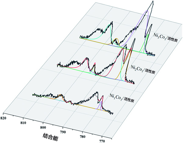 采用X射線光電子能譜(XPS)對(duì)多種活性炭催化劑進(jìn)行表面分析,并對(duì)鎳和鈷進(jìn)行表征氧化態(tài)。Ni02p光譜表現(xiàn)出兩個(gè)貢獻(xiàn),2p1/2和2p3/2(由自旋軌道分裂產(chǎn)生),分別位于870eV和852.4eV(圖1a-d),可以分配給存在金屬鎳。O1s峰和Ni2+的存在,這可以通過(guò)在873.8eV(Ni2+2p1/2)和852.8eV(Ni2+2p3/2)的主峰上觀察到的肩峰來(lái)證明,表明樣品在暴露于大氣層。類似地,催化劑中Co2p的XPS光譜(圖2)顯示出四個(gè)主峰,結(jié)合能分別為778.45eV、782.7eV、793.66eV和798eV,對(duì)應(yīng)于Co02p3/2、Co2+2p3/2,Co02p1/2和Co2+2p1/2。此外,根據(jù)載鎳活性炭,已觀察到載鎳鈷活性炭的結(jié)合能偏移隨著鈷負(fù)載量的增加而增加,最大偏移約為0.3eV。在比較這些樣品時(shí),從載鎳活性炭到載鎳鈷活性炭向更高結(jié)合能的轉(zhuǎn)變提供了鎳、鈷和載體物質(zhì)之間相互作用的證據(jù)。