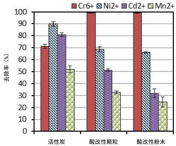 來自采礦活動、工業(yè)和城市廢物以及垃圾填埋場滲濾液的重金屬對地下水和地表資源造成嚴重污染。重金屬對水的污染可能來自不同的來源。Cd2+,Cr6+,Mn2+,Ni2+被引入到水資源和環(huán)境中的主要來源是廢家用電池和充電電池、電鍍、制革工業(yè)、化肥、石化產(chǎn)品和煉油廠廢水。本文研究了使用酸改性和未改性活性炭吸附從含有Ni2+、Mn2+、Cr6+和Cd2+的季銨鹽水溶液中競爭去除金屬離子的方法。活性炭用硝酸氧化,呈顆粒狀和粉末狀,并測試其對金屬離子從水溶液中的競爭吸附。