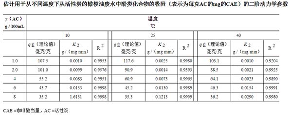 橄欖油廢水中酚類化合物處理由大多都由活性炭來吸附,本期帶大家了解活性炭的吸附劑量和溫度的影響。在最佳條件下(每100毫升8克活性炭),每克活性炭表示當(dāng)量mg的活性炭的最大吸附容量為10.8℃時為35.8℃,25℃為35.4℃,40℃時為36.1℃ C。偽二階模型被認(rèn)為是最適合于動力學(xué)結(jié)果,并且選擇Langmuir等溫線來更好地描述吸附系統(tǒng)。結(jié)果證實了活性炭從橄欖油流出物中幾乎除去所有酚類化合物部分的效率。