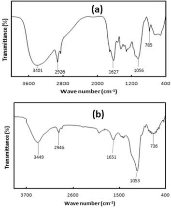 1.(a)前體原料和(b)活性炭的FT-IR光譜。