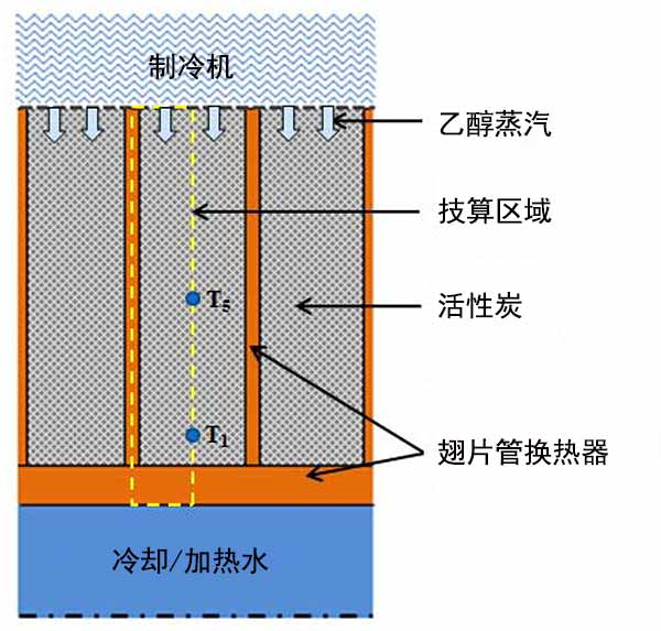 活性炭乙醇小型吸附冷卻系統(tǒng),使用活性炭和乙醇作為工作對的翅片管型吸附器的性能研究,并開發(fā)了一種瞬態(tài)二維軸對稱計(jì)算流體動力學(xué)(CFD)模型。吸附器換熱器的設(shè)計(jì)對提高吸附式冷卻系統(tǒng)的性能具有重要意義。本期研究的CFD模型將用于翅片高度和翅片間距優(yōu)化,并可擴(kuò)展到其它基于活性炭吸附劑的吸附冷卻系統(tǒng)。