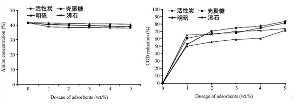 該單乙醇胺廢水含有許多類(lèi)型的分子和離子。因此,某些分子和離子基于其特性被吸附到這些吸附劑表面上;钚蕴烤哂惺杷砻,有利于空氣中的有機(jī)物。同時(shí)沸石是親水性吸附劑。吸附劑的這些特性有助于降低COD水平。從結(jié)果可以看出,與活性炭和沸石相比,活性炭是降低COD水平的效果好的吸附劑。
