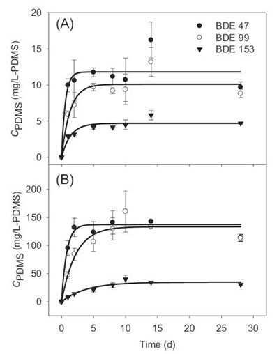 圖1:活性炭在混合條件下沉積物中PDMS纖維的吸收動力學(xué)。