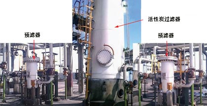 活性炭可以由椰子殼,褐煤,煤,瀝青和木質(zhì)材料等制成。源將確定其可吸附的污染物的吸附容量和尺寸分布。就配置而言,活性炭可以是粉末或顆粒狀的;钚蕴窟^濾系統(tǒng)通常用于除去雜質(zhì),使得胺溶液可以適當(dāng)?shù)赜糜谟行コ廴疚。如果沒有從胺溶液中適當(dāng)?shù)爻ルs質(zhì),則在工廠中可能發(fā)生起泡,腐蝕和其它問題,導(dǎo)致相當(dāng)大的負(fù)面技術(shù)和經(jīng)濟(jì)效果。通常,瀝青類型的活性炭被選擇用于胺單元,因?yàn)槠湓谔季Я?nèi)具有小,中和大孔的平衡。這種分布通常最適合具有廣泛分子尺寸污染物分布的胺流。典型的活性炭過濾系統(tǒng)如圖2所示。