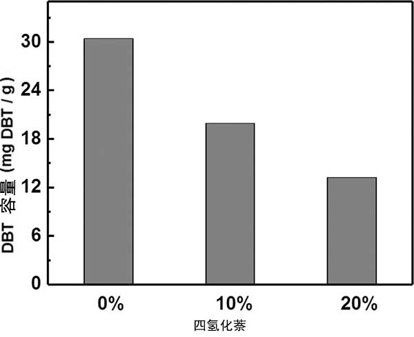 圖4.在具有不同質(zhì)量分數(shù)的四氫化萘存在下活性炭對DBT的吸附容量。