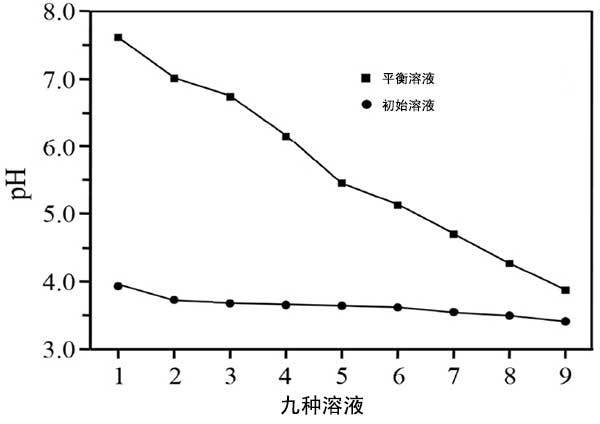 圖2:初始溶液和平衡溶液的pH用于在40℃下進(jìn)行的測試。