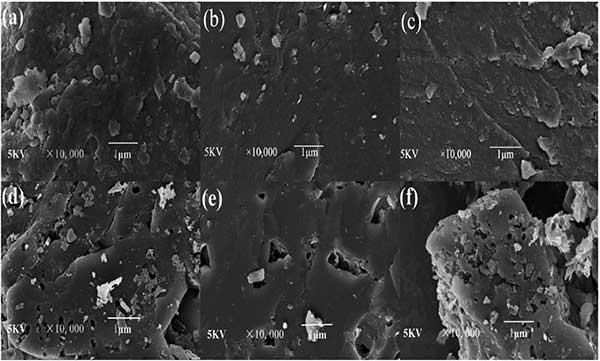 從表面形態(tài)分析不同煤和活性炭的SEM圖像如圖2所示。它表明三種活性炭的表面相對光滑,沒有任何毛孔,除了偶爾的裂縫。在活化后,三個活性炭的外表面都顯示出不規(guī)則的孔。活性炭的表面相對粗糙并且表現(xiàn)出更多的孔。而具有低灰分和揮發(fā)性物質(zhì)含量的炭2顯示出相當光滑的表面?赡苁窃跉饣^程中形成的金屬鉀可以擴散到碳基質(zhì)的內(nèi)部結(jié)構(gòu)中,從而擴大現(xiàn)有的孔隙并產(chǎn)生新的孔隙。