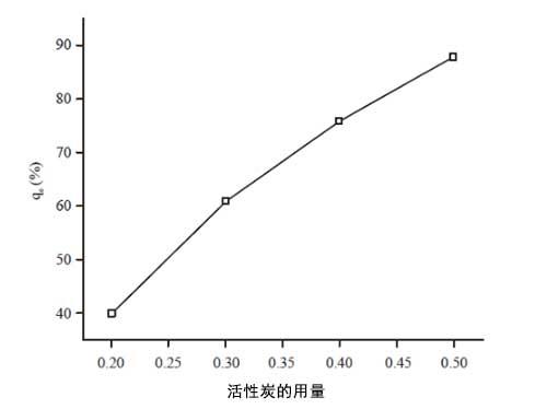 吸附劑劑量的影響:使用給定的前者初始濃度和pH,作為活性炭負(fù)載的函數(shù)吸附的酚紅染料的百分比(w/w)的圖示于圖5中。在其研究范圍內(nèi),隨著活性炭負(fù)荷的增加,染料的吸附增加。這可能是因?yàn)樵谠黾踊钚蕴控?fù)載,它的表面面積,因而活性位點(diǎn)/吸附物(染料)分子的可用性增加。