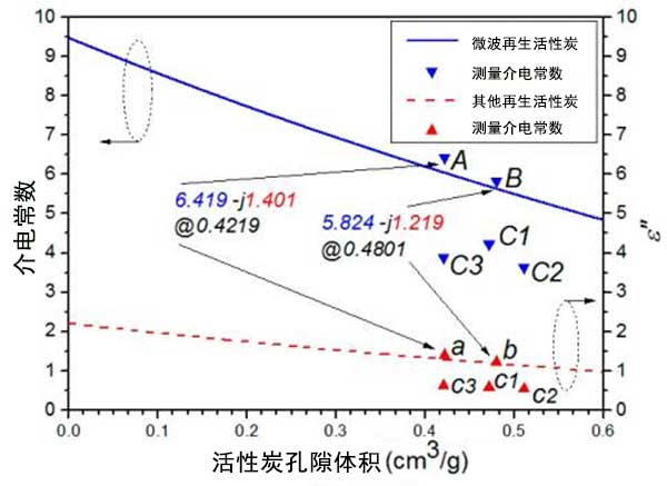 活性炭擁有優(yōu)秀的吸附能力,是由于各種不同原料與不同工藝而導致活性炭內(nèi)部的孔結構和大的比表面積,使其成為理想的介質(zhì),用于吸附雜質(zhì)和純化兩種水溶液或者各種廢氣處理。為了回收和保護有限的資源,用過的活性炭需要重新活化。用于再生活性炭微波熱處理比其他處理方法更好,更節(jié)能地再生活性炭。特別是在微波加熱工業(yè)中,介電常數(shù)是一個關鍵參數(shù)。本文介紹介電常數(shù)與活性炭孔隙體積與吸附性能之間的關系。