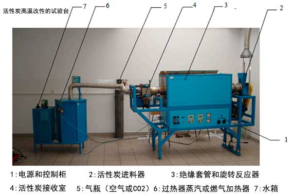 活性炭在回轉(zhuǎn)窯中在空氣,蒸汽或二氧化碳氣氛中在400℃下在空氣,蒸汽或二氧化碳氣氛中在800℃下進行改性。改性在1小時內(nèi)進行。用來自空氣,二氧化碳或水蒸氣的氧氣改性活性炭導(dǎo)致在碳表面上形成酸性氧官能團。在800℃下用水蒸氣或二氧化碳氧化或活化活性炭導(dǎo)致形成堿性官能團。所提出的改性方法允許獲得表面的不同化學特性的吸附劑。在改性之前,用蒸餾水漂洗活性炭幾次。將碳在回轉(zhuǎn)窯中在400或800℃的溫度下改性1小時(圖1)。