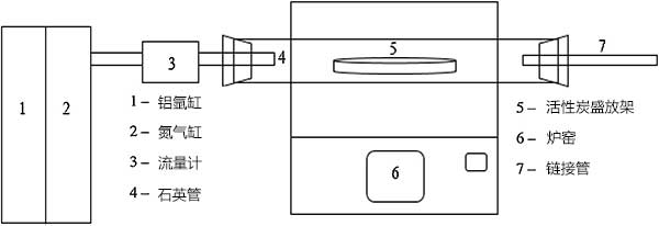 將三種棕櫚廢物預處理的樣品碳化并通過一步法在700℃下在氬氣流下使用管式爐以10℃/min的加熱速率活化。當達到700℃的設定溫度時,以5L/min的流速代替氮氣的氬氣流,以活化1小時的保持時間。圖2顯示了一步物理活化的實驗裝置的示意圖。然后使樣品冷卻并儲存在密閉容器中以避免孔吸附大氣氣體。