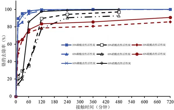 使用活性炭吸附劑處理環(huán)境中的污染物是現(xiàn)在普遍的處理方法,主要是因為活性炭具有各種具有不同表面特征的形式。通過操縱活性炭的物理和化學表面特征(例如表面積,孔徑,孔體積和官能團)來實現(xiàn)不同的表面性質(zhì)。為了用于從水溶液中吸附金屬離子,所制備的碳的雖然物理結構很好了但是化學性質(zhì)不是很大,需要重新改性。有時在活性炭上進行化學再活化或二次處理方法以進一步操縱表面性質(zhì)以改善其去除期間污染物的選擇性和吸附效率。因此,在本期我們研究各種濃度的無機酸比如硫酸、磷酸或硝酸為活性炭改性中的活化劑,測試那種活化劑能增強活性炭對鉻去除的效果。