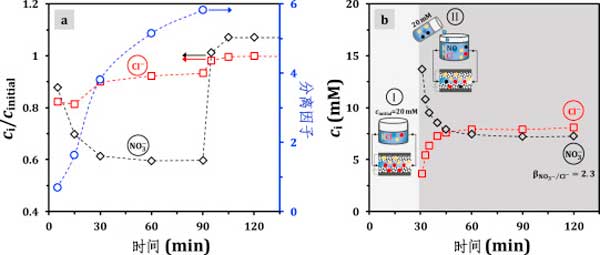硝酸鹽和氯化物的電吸附:離子選擇性由動(dòng)力學(xué)和平衡控制