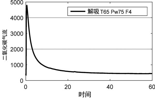 在實驗中通過在溫和溫度下的水分振蕩進(jìn)行解吸實驗,以使活性炭中碳酸鉀再生回碳酸鉀倍半水合物在升高的溫度和氮氣流下的再生步驟將具有大的能量損失,使這個過程在經(jīng)濟(jì)上不可行。圖5顯示了二氧化碳濃度峰值剛好低于5000ppm。質(zhì)量平衡表明,在實驗中釋放了吸附的總二氧化碳的50%。盡管最大二氧化碳濃度對于實際應(yīng)用來說不夠高,但該實驗證明了在活性炭內(nèi)碳酸鉀倍半水合物和碳酸鉀之間循環(huán)的概念。需要進(jìn)一步優(yōu)化解吸過程。