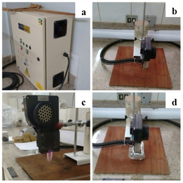 電處理用于促進(jìn)樣品的表面氧化。將樣品放在鋁箱中(圖1d),目的是為了均勻處理并避免過程中的損失,因?yàn)榛钚蕴砍史勰,并且與放電接觸會造成損失。使用了四種電處理,改變了樣品對放電的暴露時間。標(biāo)準(zhǔn)處理方法之一(T1)。因此,在該處理中沒有進(jìn)行曝光放電。其他處理的曝光時間分別為2、5、8和10分鐘(分別為T2,T3,T4和T5)。每次處理稱重約2.0 g的活性炭。電擊頭部高度確定為4.5厘米。