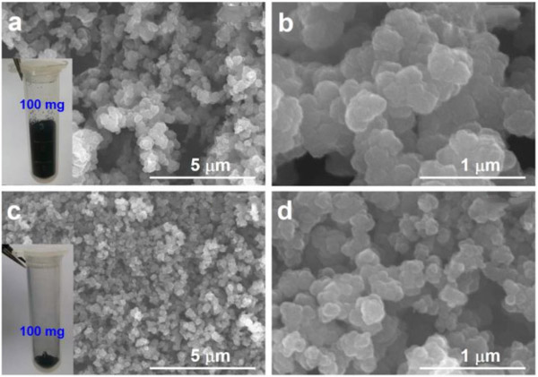 圖2中的插圖是兩種活性炭的數(shù)碼照片。當將相同量的兩種活性炭(100 mg)放入相同體積的離心管(5 mL)中時,活性炭-1粉末占據(jù)的體積更大,這表明他的密度較低。通過掃描電子顯微鏡研究了他們的形態(tài)。如圖2所示可以看出,與原始材料相比,兩種活性炭的外觀變化不大。但是,它們的粒徑不同。顯然,活性炭-1的顆粒大于活性炭-2的顆粒。這些顆粒聚集在一起并形成多孔形態(tài);钚蕴-1具有更大的孔徑,表明較疏松的多孔結構。